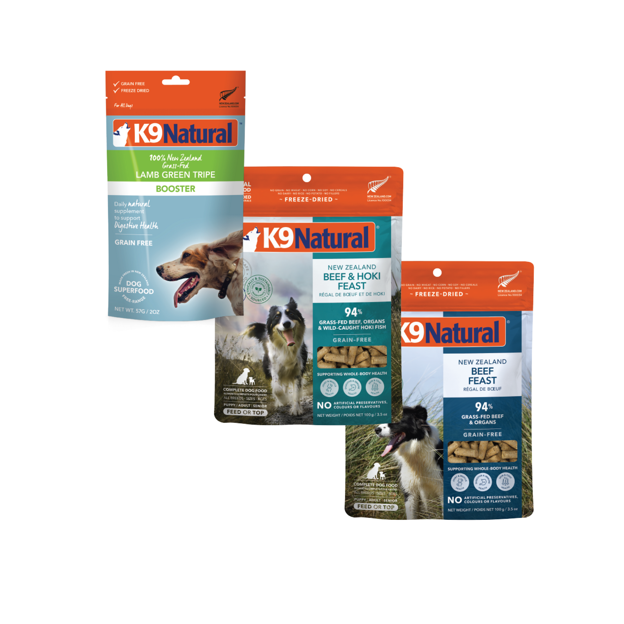 Sourcing only the highest quality New Zealand grass-fed, free-range Lamb Green Tripe, K9 Natural Green Tripe Boosters aid in healthy digestion, nourishing skin & coat, assisting immune response and overall health and well-being.