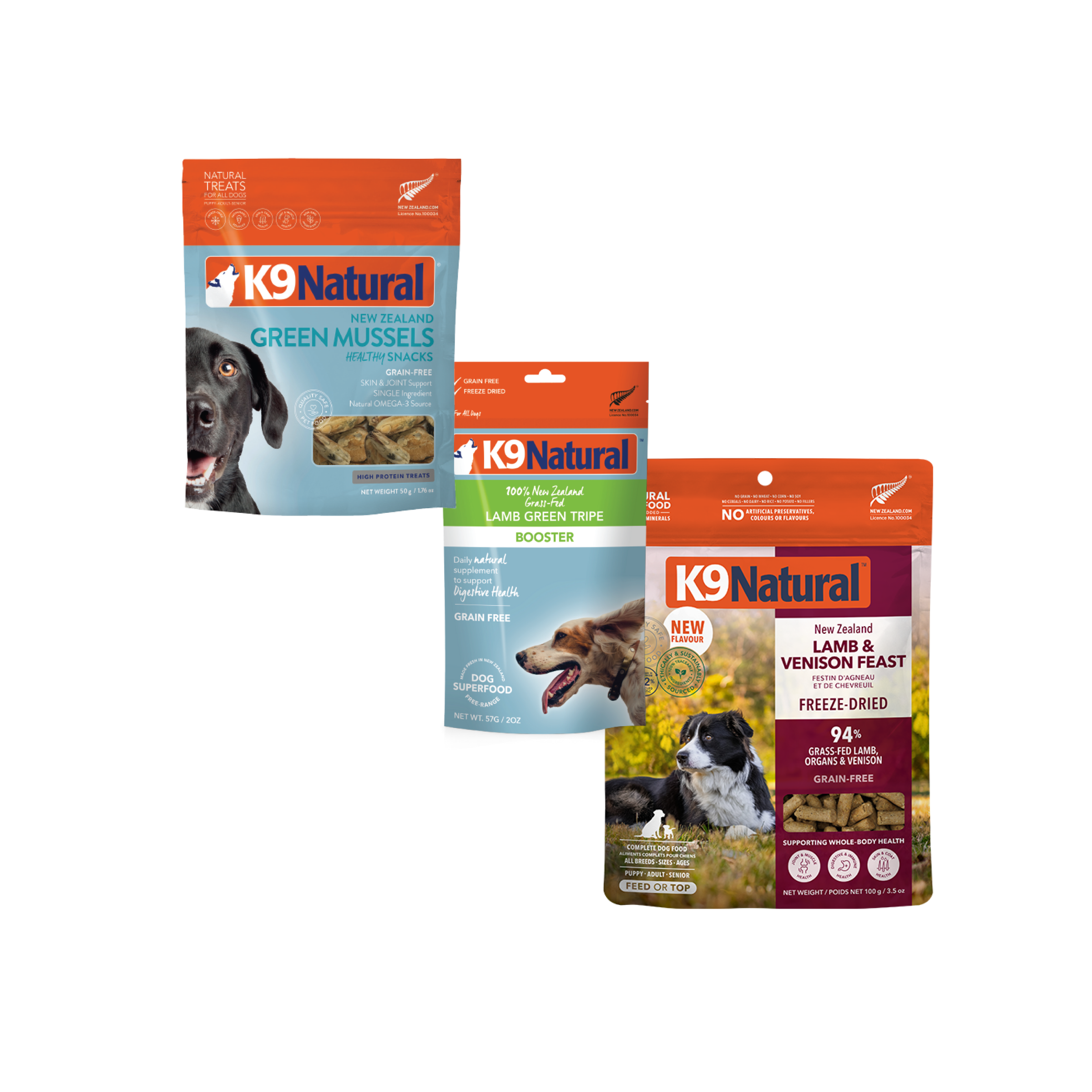 Sourcing only the highest quality New Zealand grass-fed, free-range Lamb Green Tripe, K9 Natural Green Tripe Boosters aid in healthy digestion, nourishing skin & coat, assisting immune response and overall health and well-being.
